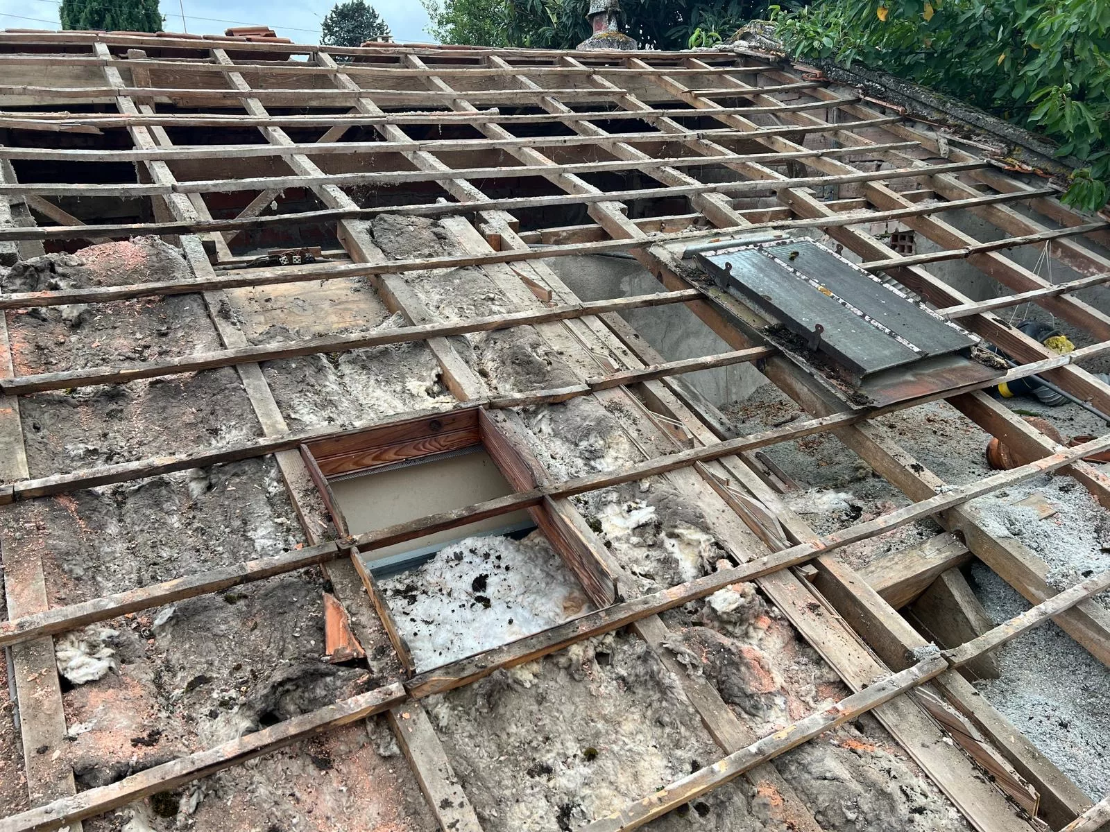 À la fin du chantier, la toiture neuve présente une ligne impeccable, parfaitement intégrée à l’environnement du quartier. Les tuiles posées offrent à la maison une allure soignée, tout en garantissant une excellente protection thermique et une étanchéité durable.